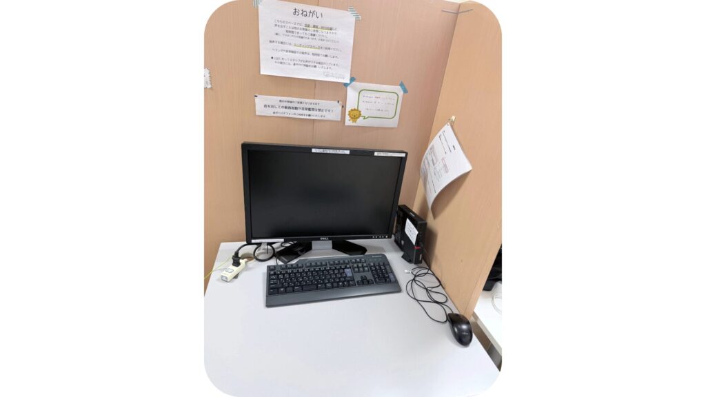 パーテーションの裏側は貸し出しPCも備え付けられています。
