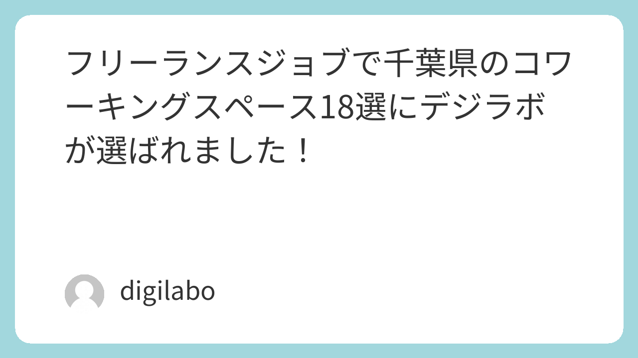フリーランスジョブで千葉県のコワーキングスペース18選にデジラボが選ばれました! お知らせ 2025.12.24 【2025年版】千葉県のコワーキングスペース18選|フリーランスエンジニアの“働きやすさ”で選ぶコワーキングスペースに選出されました。 ご紹介していただいているページはこちらです。 今後もより一層お客様のお役に立てるよう頑張ってまいります。