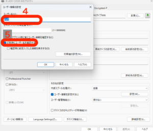 ⑤「印刷時にユーザー名を確認する」にチェックを入れます。